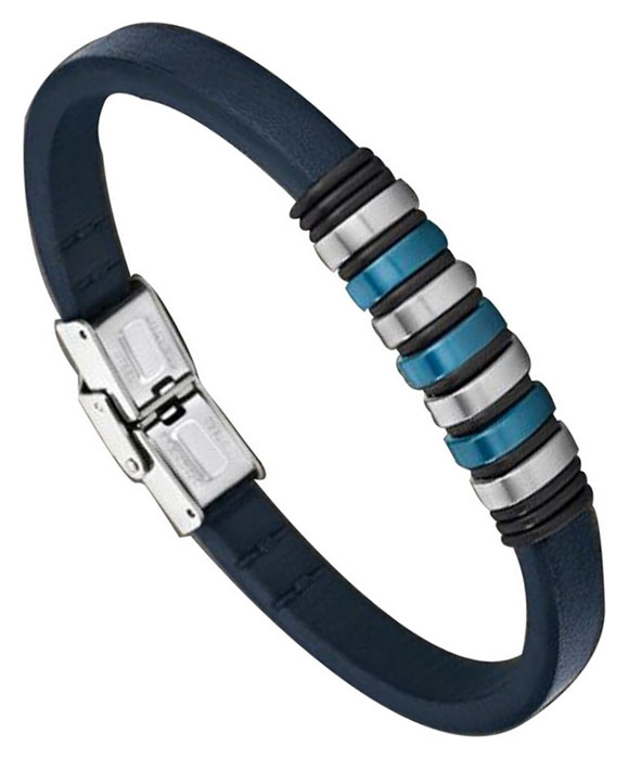 Bracelet pour homme de la collection Lotus en cuir bleu foncé et acier bicolore.