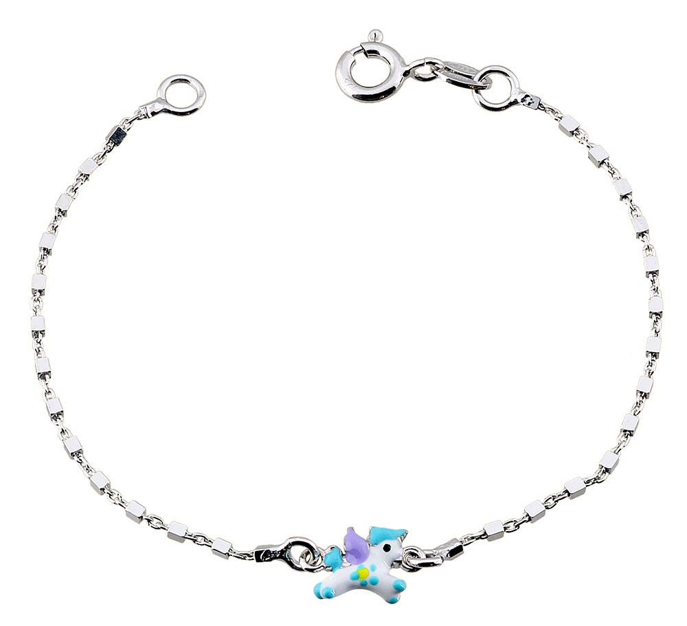 Bracelet pour fille en argent 925 millièmes et laque représentant une licorne.