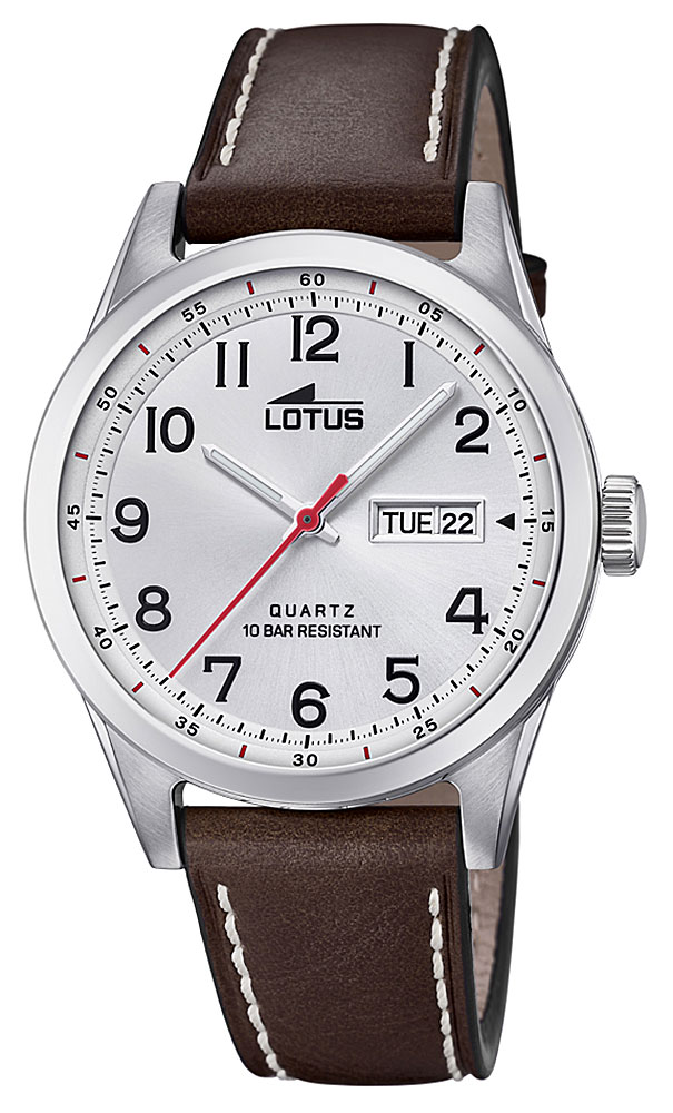 Montre pour homme de la collection Lotus en acier inoxydable sur un bracelet en cuir marron.