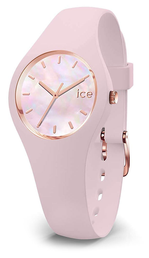 Montre pour femme de la collection Ice-Pearl de Ice-Watch en silicone rose avec un fond de cadran nacré. Très petite taille.