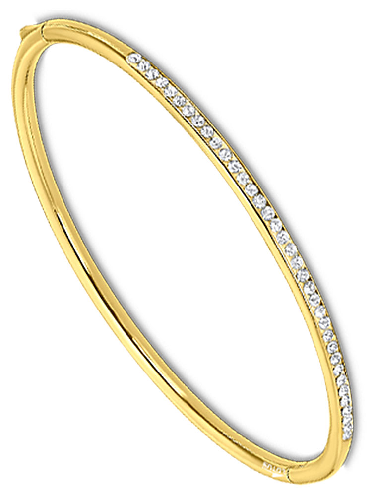Bracelet rigide ouvrant de la collection Lotus en métal doré serti de pierres de synthèse.
