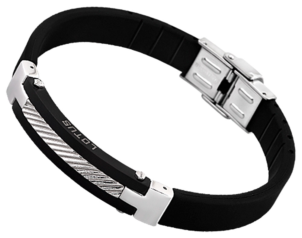 Bracelet pour homme de la collection Lotus en caoutchouc noir et acier inoxydable.