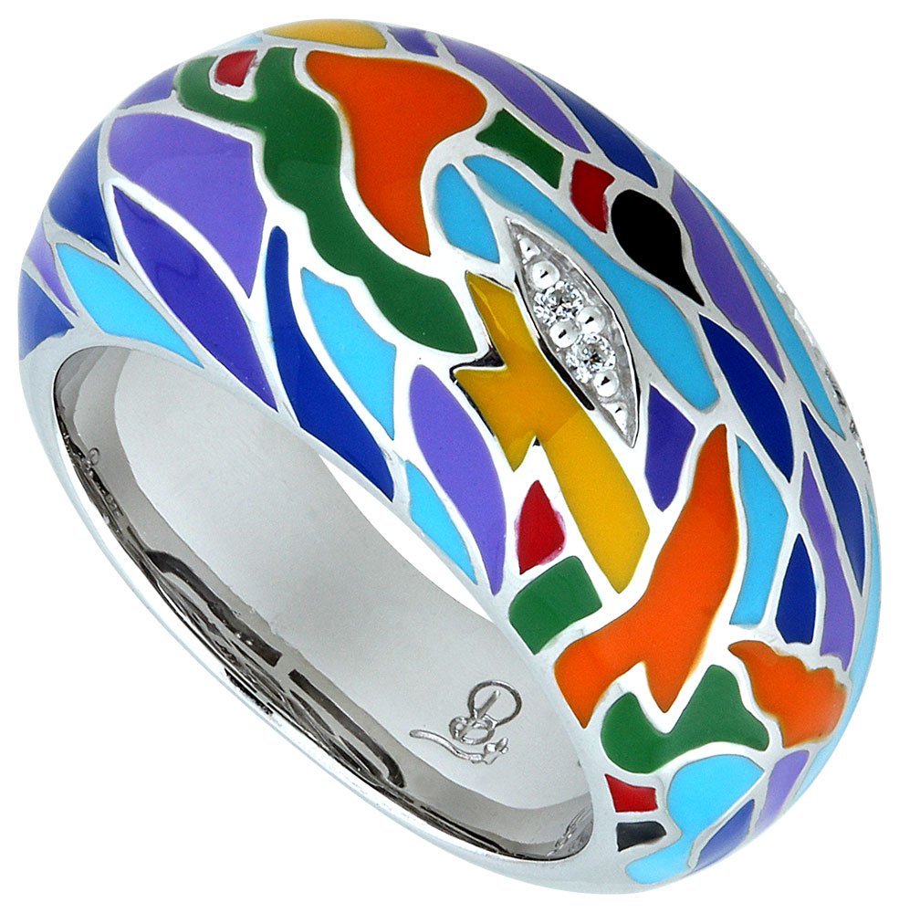 Bague de la collection Una Storia en argent 925 millièmes et laque multicolore.