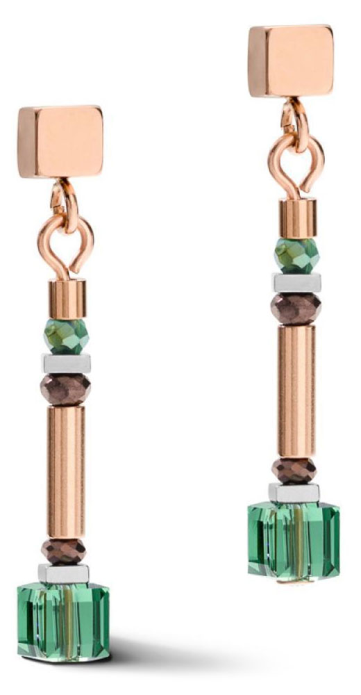 Boucles d'oreille pendantes de la collection Coeur de Lion en métal doré rose et cristaux de Swarovski verts.