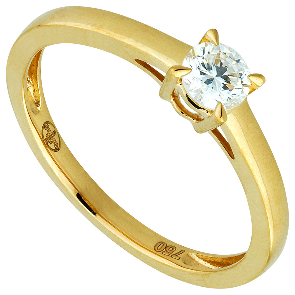 Solitaire en or jaune 750 millièmes serti d'un diamant taille brillant de 0.30 carat.