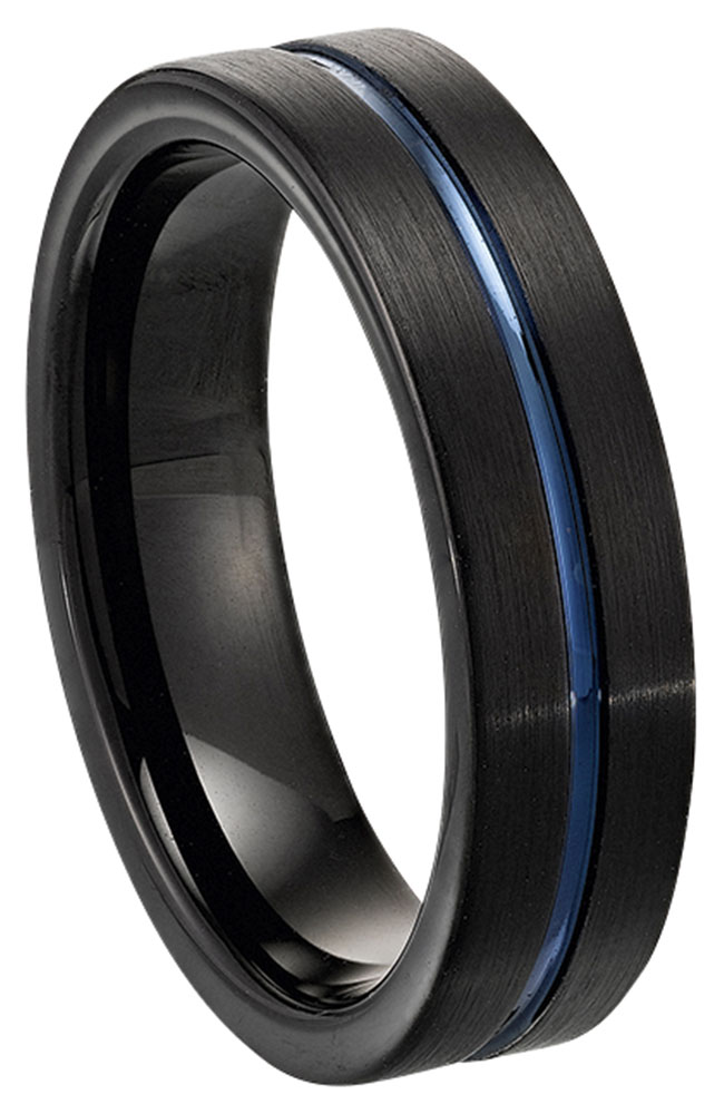 Bague pour homme de la collection Jourdan en tungstène noir et bleu.