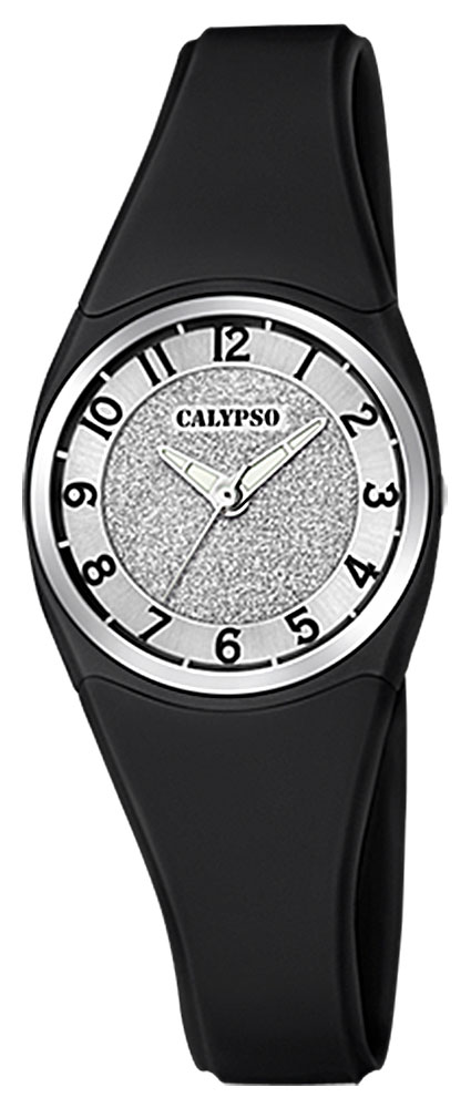 Montre pour femme de la collection Calypso en résine noire et grise.