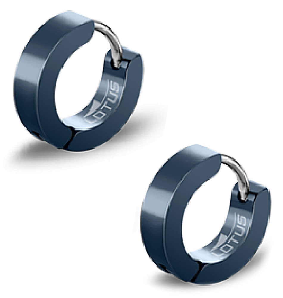 Boucles d'oreille pour homme de la collection Lotus en acier bleu.