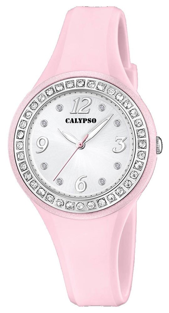 Montre pour femme de la collection Calypso en résine rose.