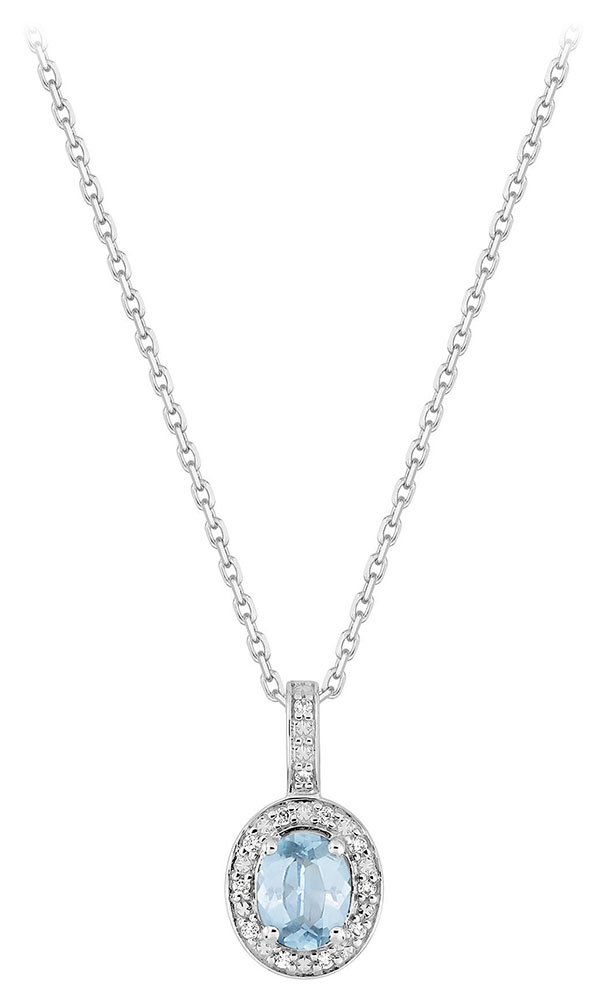 Collier en or blanc 750 millièmes sertie d'une topaze bleue traitée et d'oxydes de zirconium.