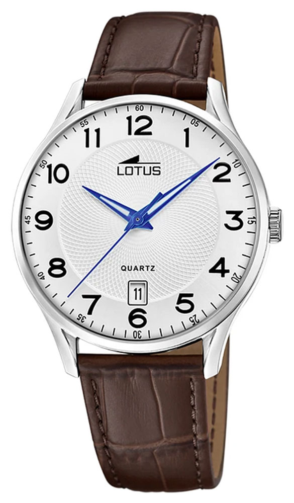 Montre pour homme de la collection Lotus en acier inoxydable sur un bracelet en cuir marron.