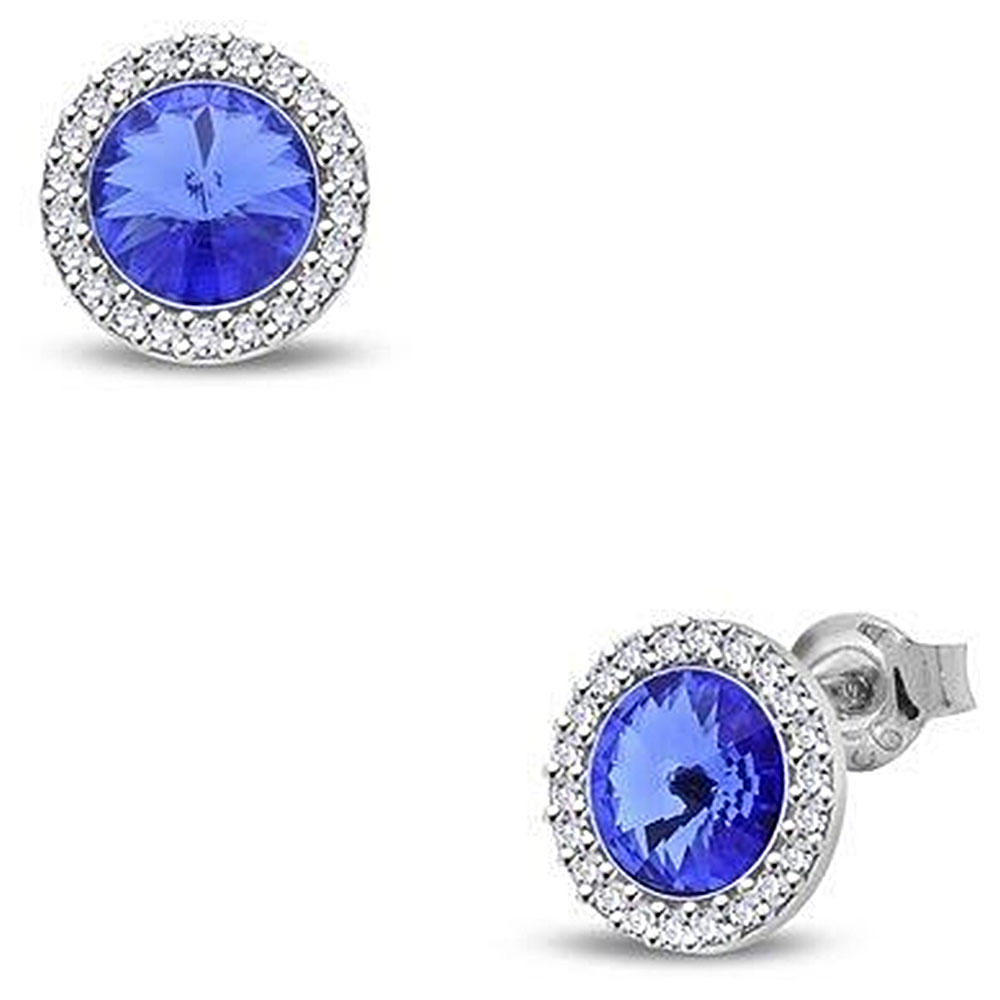 Boucles d'oreille de la collection Spark en argent rhodié 925 millièmes et cristal bleu.