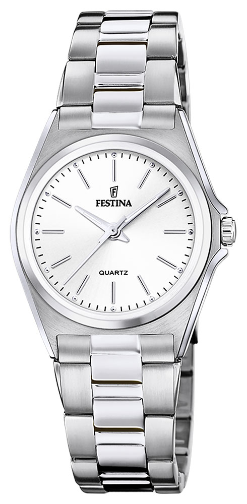 Montre pour femme de la collection Festina en acier inoxydable avec un fond de cadran gris.
