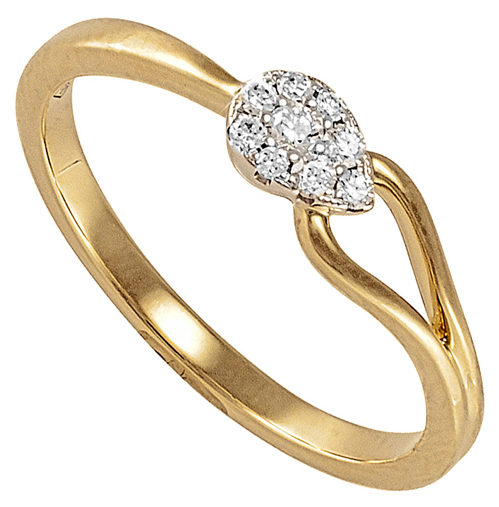 Bague en or jaune 750 millièmes sertie de diamants taille brillant.