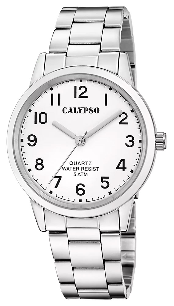 Montre pour homme de la collection Calypso en acier inoxydable avec un fond de cadran blanc.