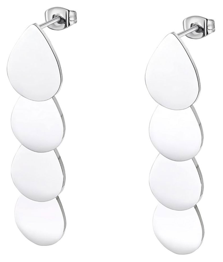 Boucles d'oreille pendantes de la collection Lotus en acier inoxydable.