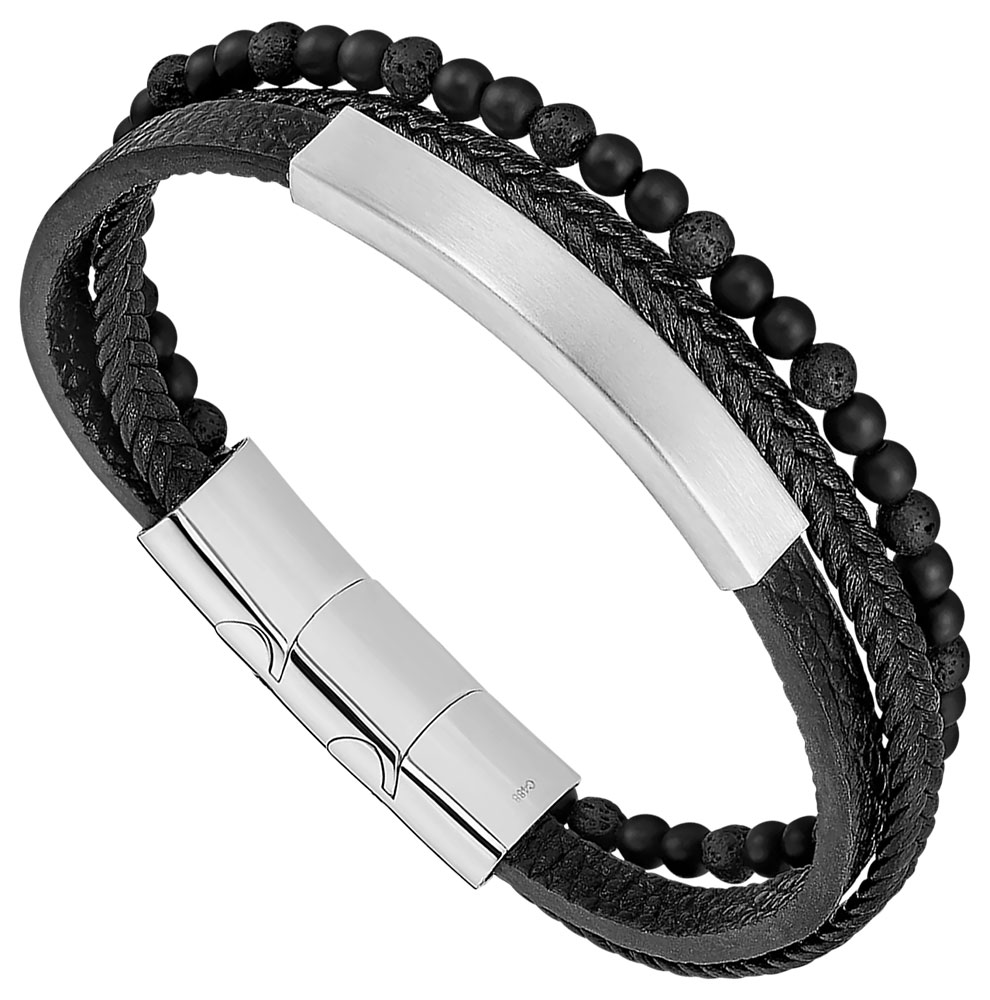 Bracelet pour homme de la collection Lotus en acier inoxydable et résine noire.