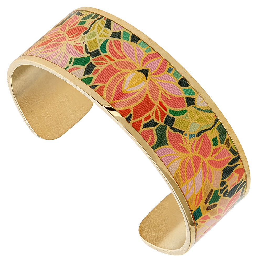 Bracelet jonc ouvert de la collection Louise 's Garden en métal doré et imprimé.