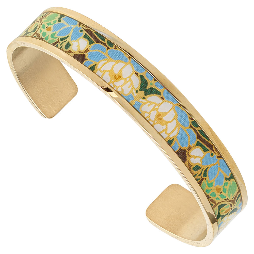 Bracelet jonc ouvert de la collection Louise 's Garden en métal doré et imprimé.