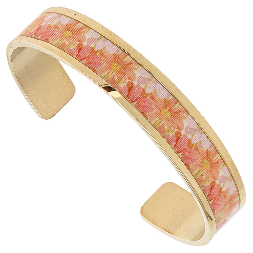 Bracelet jonc ouvert de la collection Louise 's Garden en métal doré et imprimé.