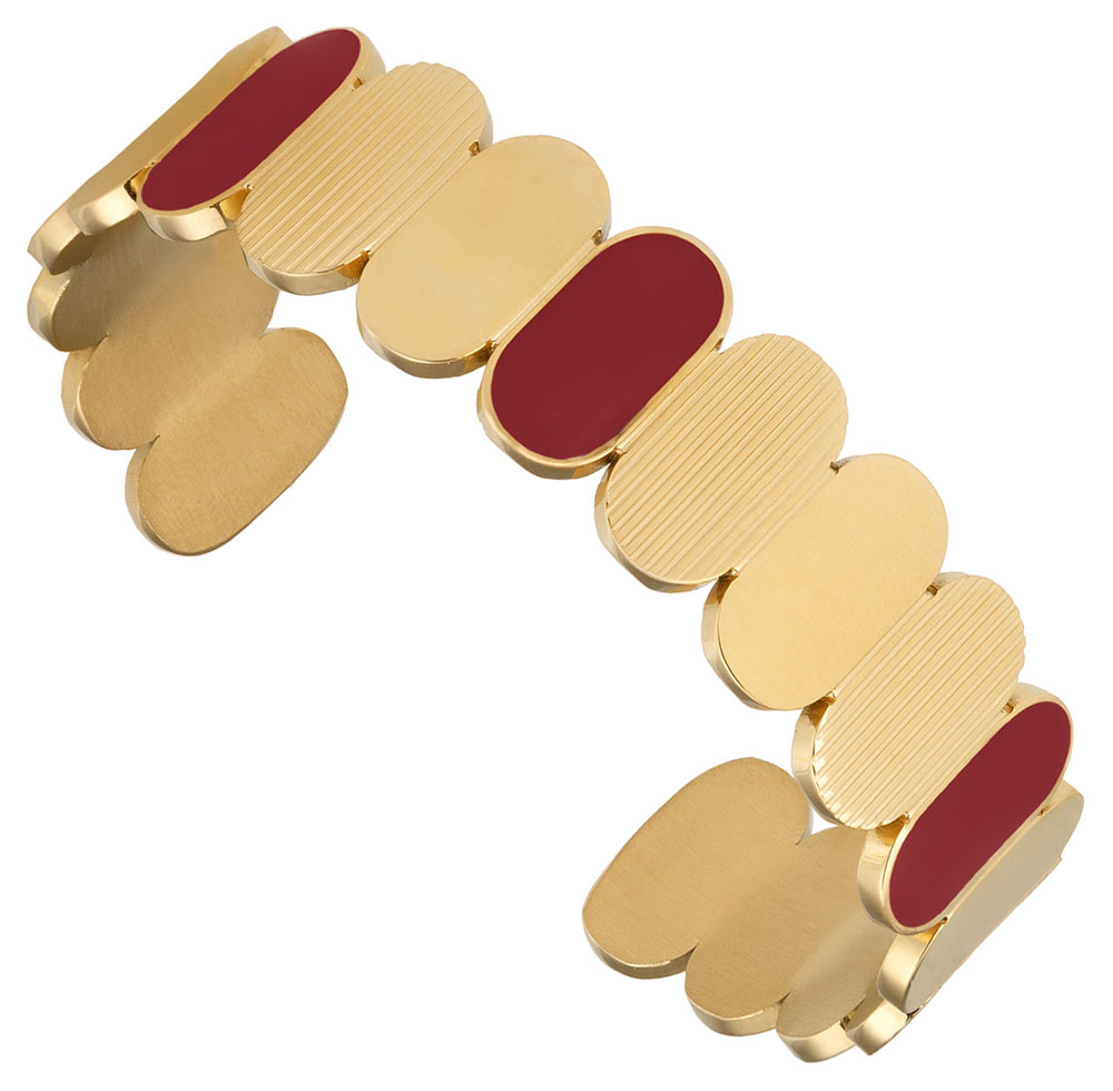 Bracelet manchette ouverte de la collection Louise's Garden en acier doré et laque rouge.