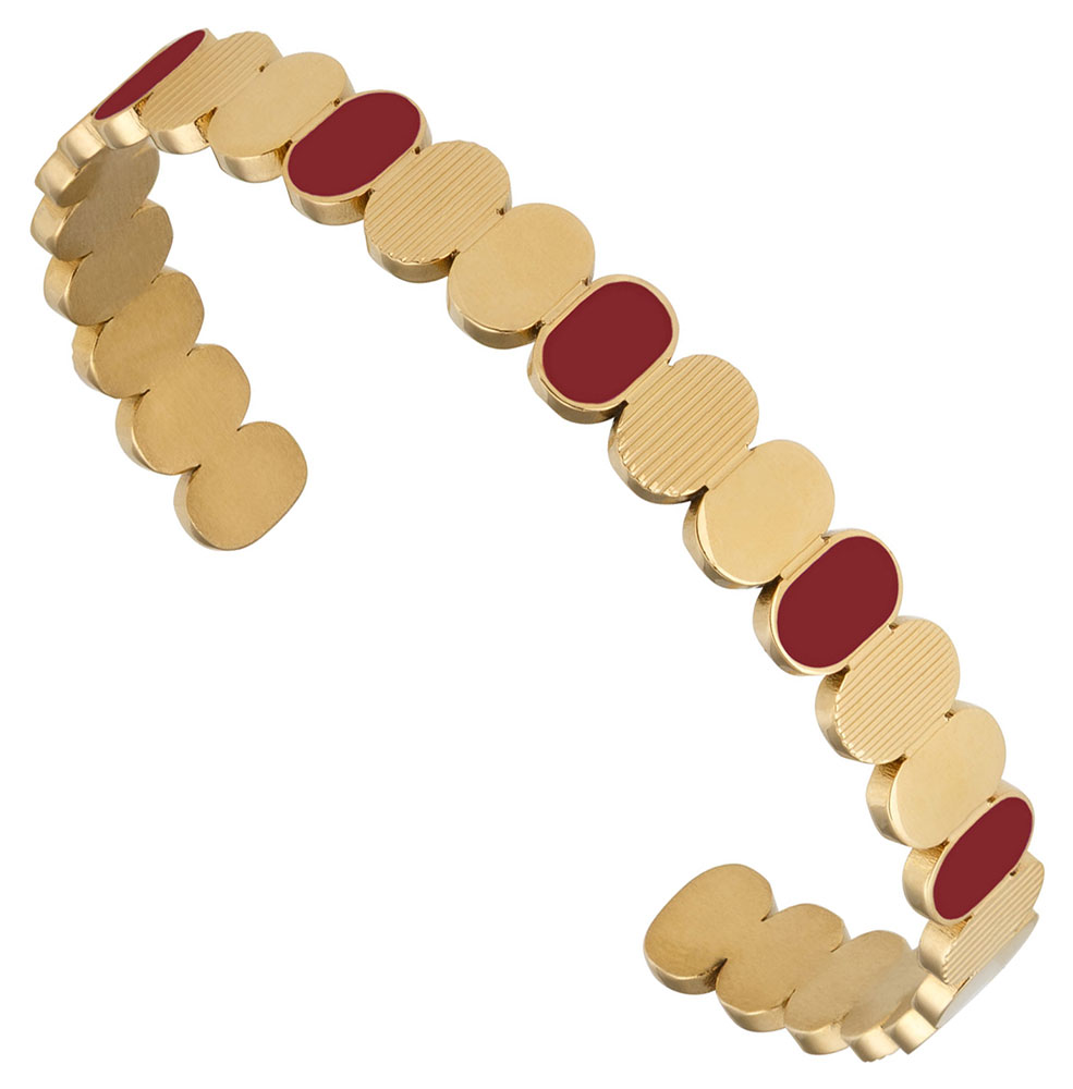 Bracelet manchette ouverte de la collection Louise's Garden en acier doré et laque rouge.
