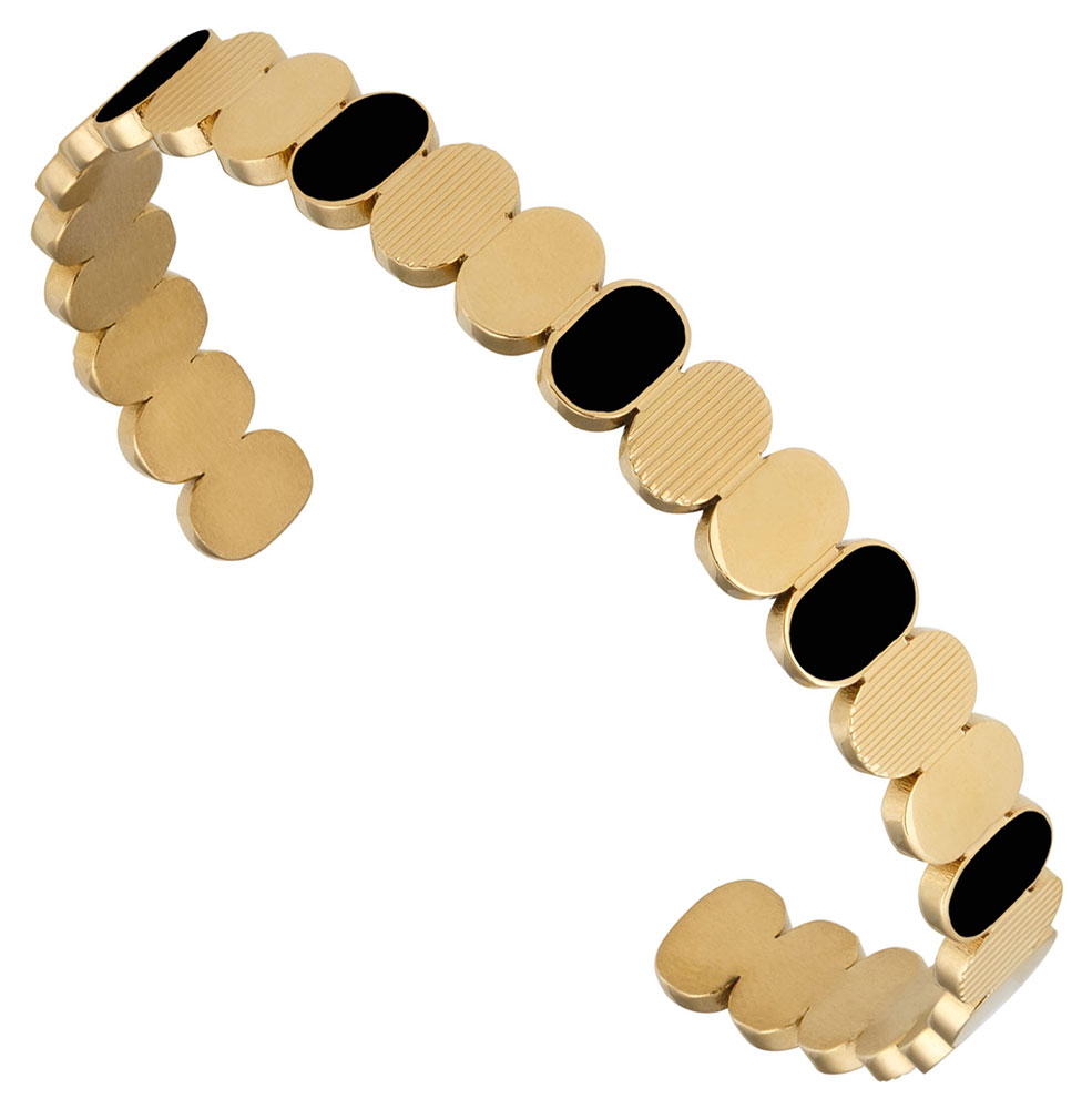 Bracelet manchette ouverte de la collection Louise's Garden en acier doré et laque noire.