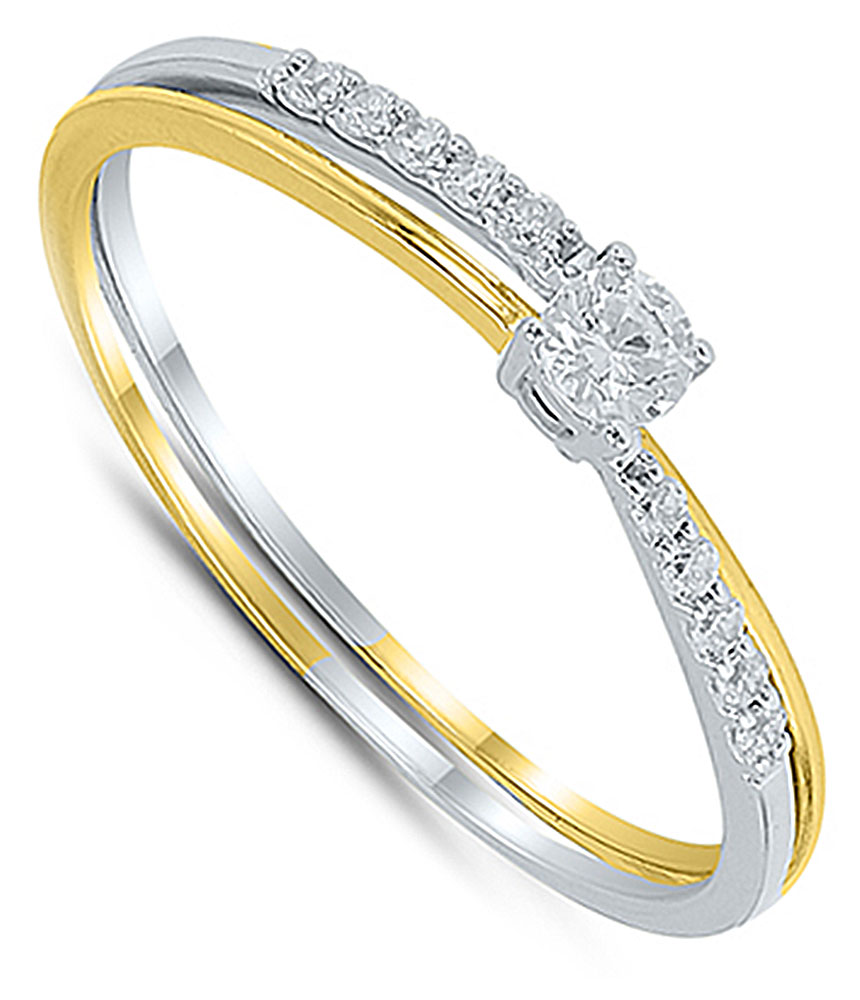 Bague en or jaune et or blanc 750 millièmes sertie de diamants taille brillant.