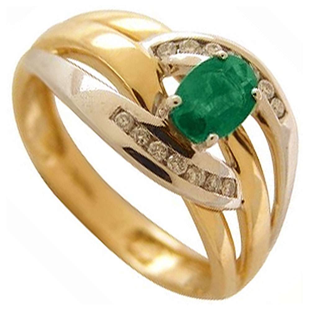 Bague en or jaune et or blanc 750 millièmes sertie d'une émeraude et de diamants taille brillant.