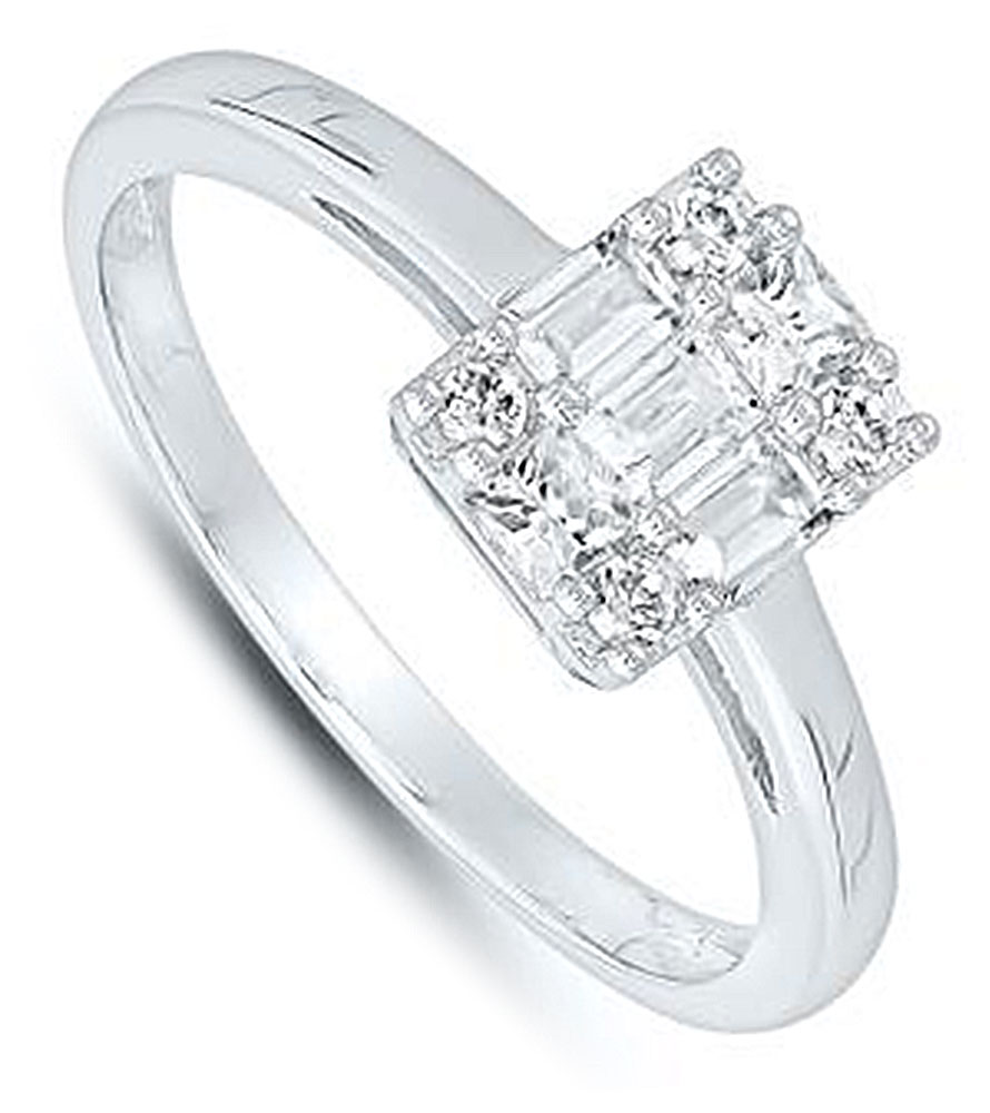 Bague en or blanc 750 millièmes sertie de diamants taille baguette ou brillant.