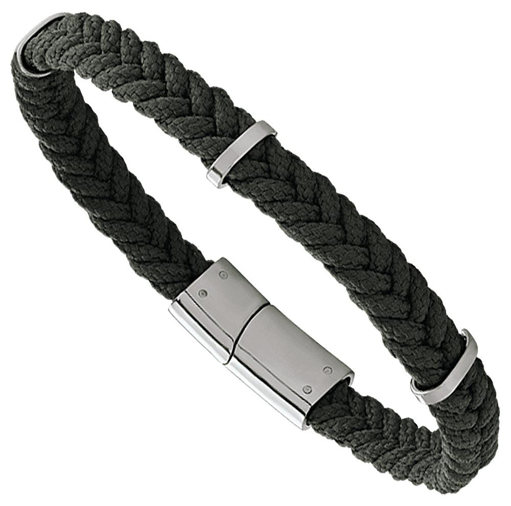 Bracelet pour homme de la collection Jourdan en tissu vert foncé et acier inoxydable.