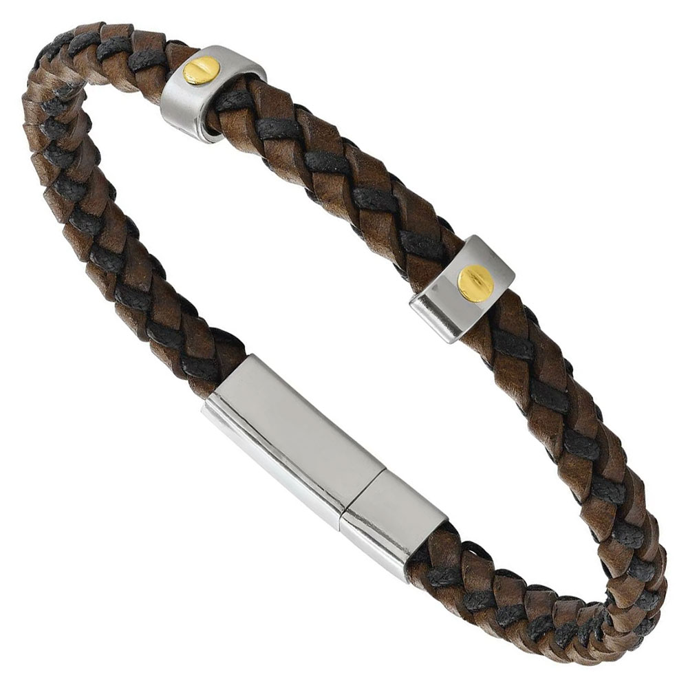 Bracelet pour homme de la collection Jourdan en cuir marron et acier inoxydable.