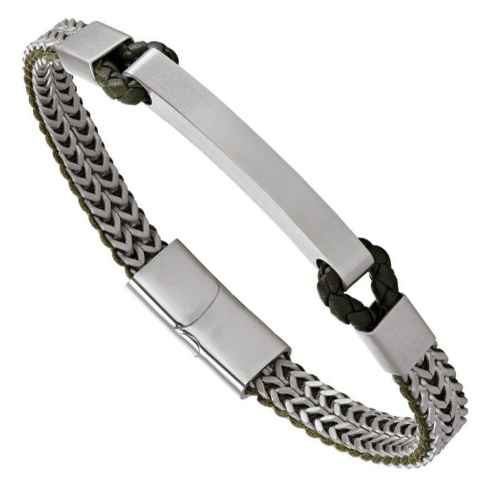 Bracelet pour homme de la collection Jourdan en acier inoxydable et cuir vert foncé.
