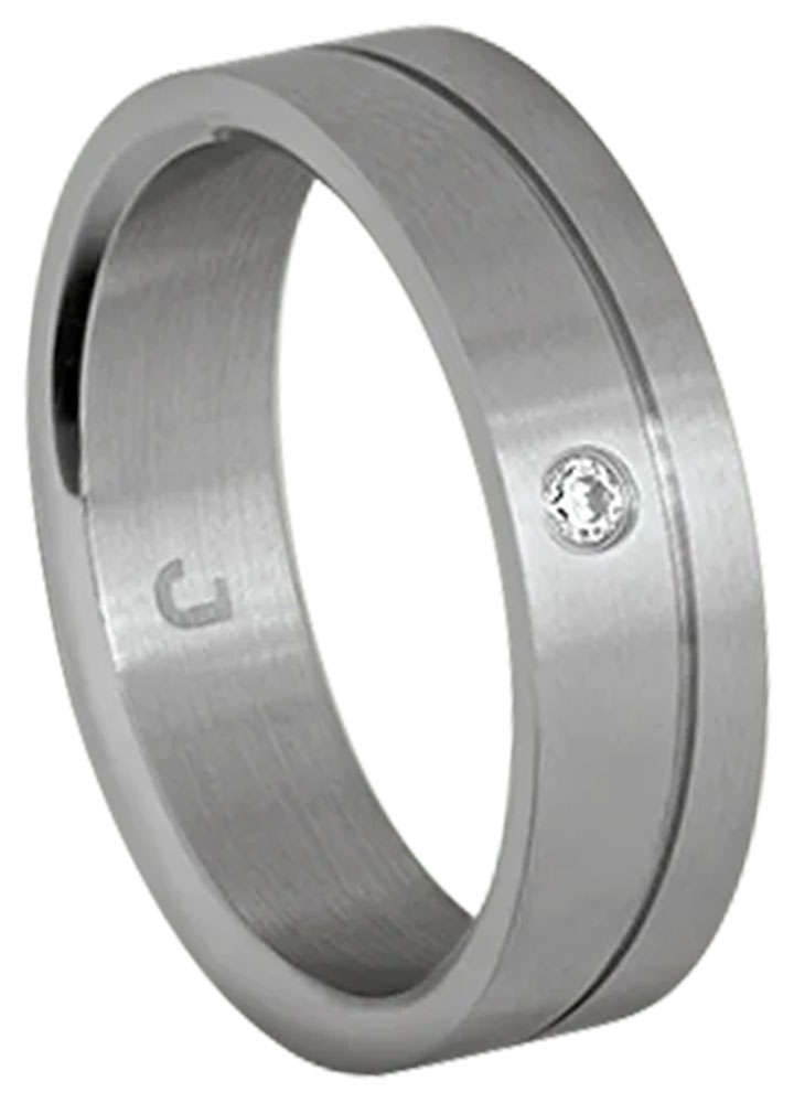 Bague pour homme de la collection Jourdan en acier inoxydable serti d'un diamant taille brillant.