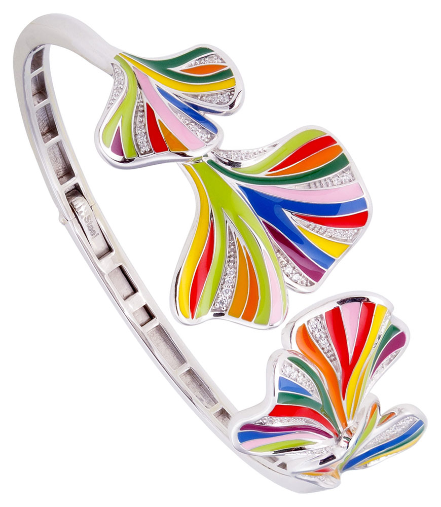 Bracelet rigide ouvrant de la collection Una Storia en argent rhodié 925 millièmes et laque serti d'oxydes de zirconium.