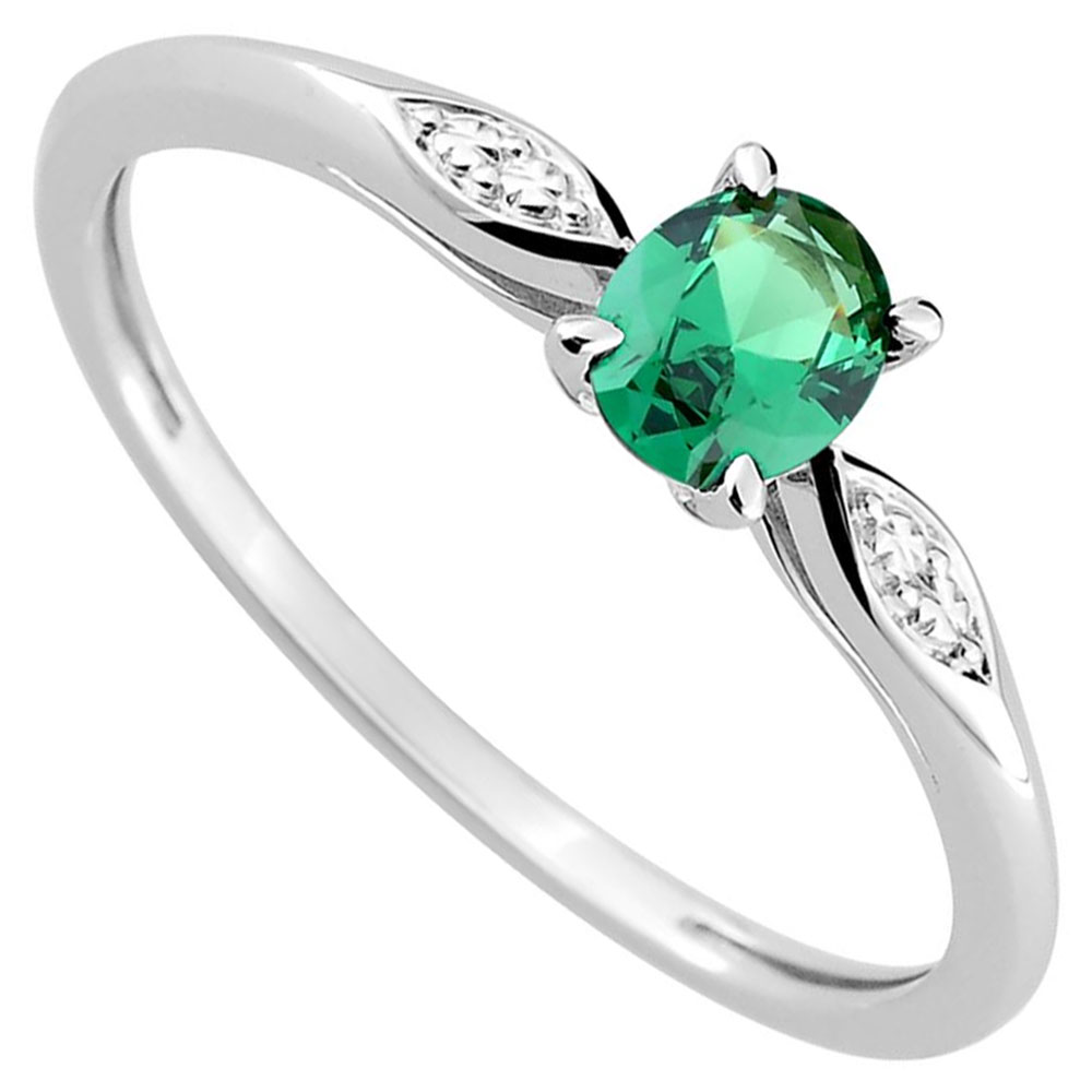 Bague en argent rhodié 925 millièmes sertie d'une pierre de synthèse verte.