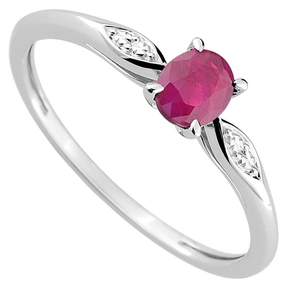 Bague en argent rhodié 925 millièmes sertie d'une pierre de synthèse rouge.