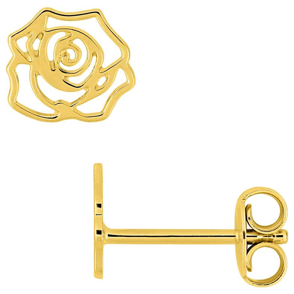 Boucles d'oreille en plaqué or jaune représentant une rose.