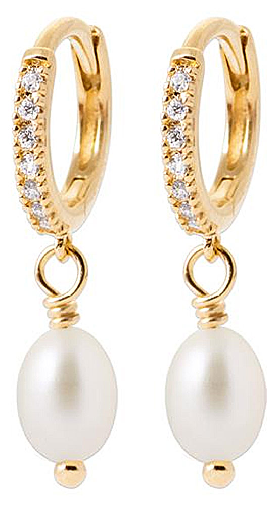 Boucles d'oreille en plaqué or jaune et perle d'eau douce serties d'oxydes de zirconium.