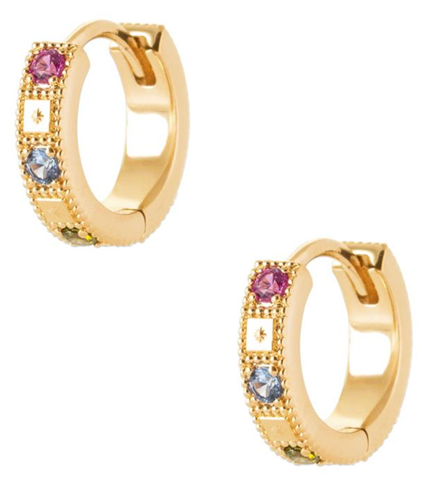 Boucles d'oreille en plaqué or jaune serties de pierres de synthèse.