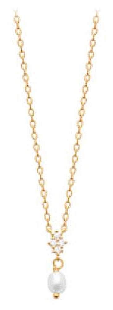 Collier en plaqué or jaune et perle d'eau douce serti d'oxydes de zirconium.