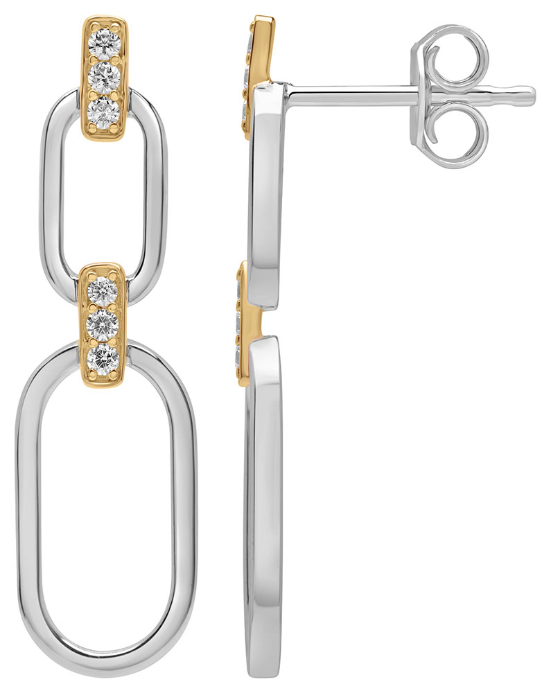 Boucles d'oreille en argent rhodié 925 millièmes et or jaune 750 millièmes serties d'oxydes de zirconium.
