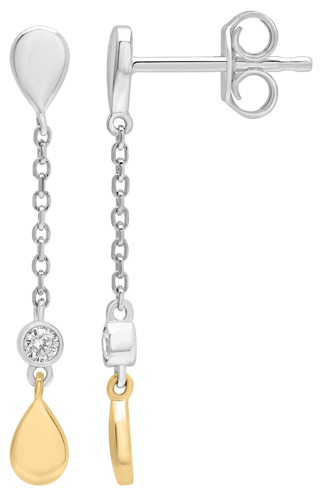 Boucles d'oreille en argent rhodié 925 millièmes et or jaune 750 millièmes serties d'un oxyde de zirconium.
