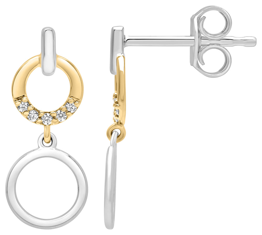 Boucles d'oreille en argent rhodié 925 millièmes et or jaune 750 millièmes serties d'oxydes de zirconium.