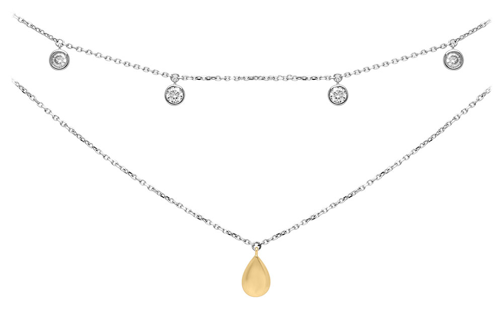 Collier en argent rhodié 925 millièmes et or jaune 750 millièmes serti d'oxydes de zirconium.