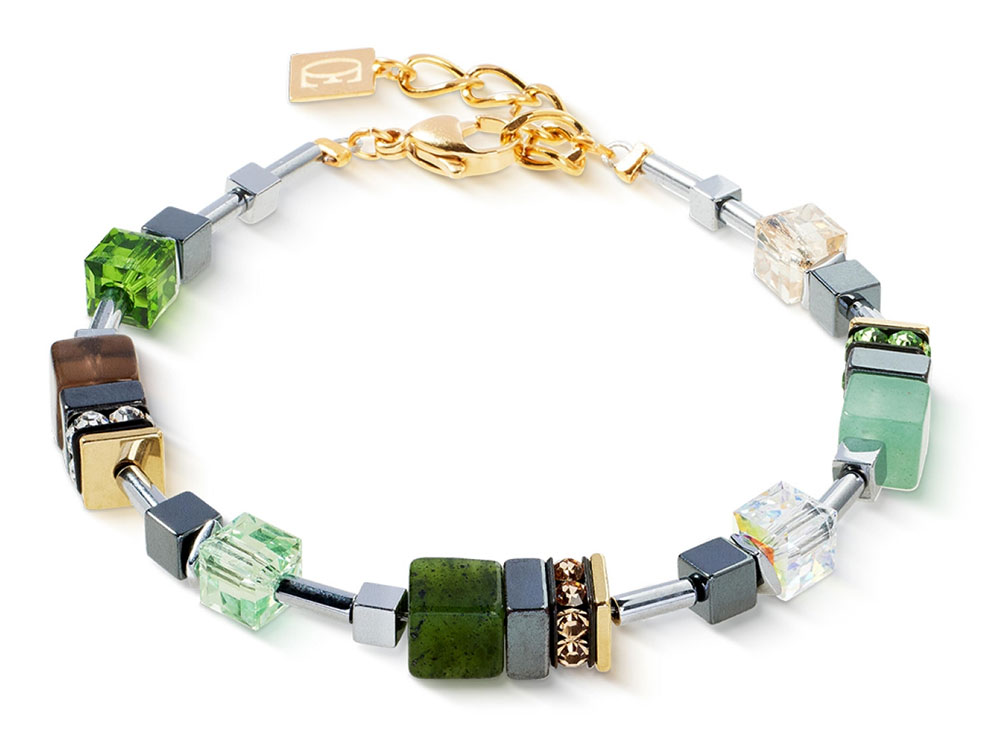 Bracelet de la collection Coeur de Lion en métal doré, verre, hématite et cristaux de Swarovski.