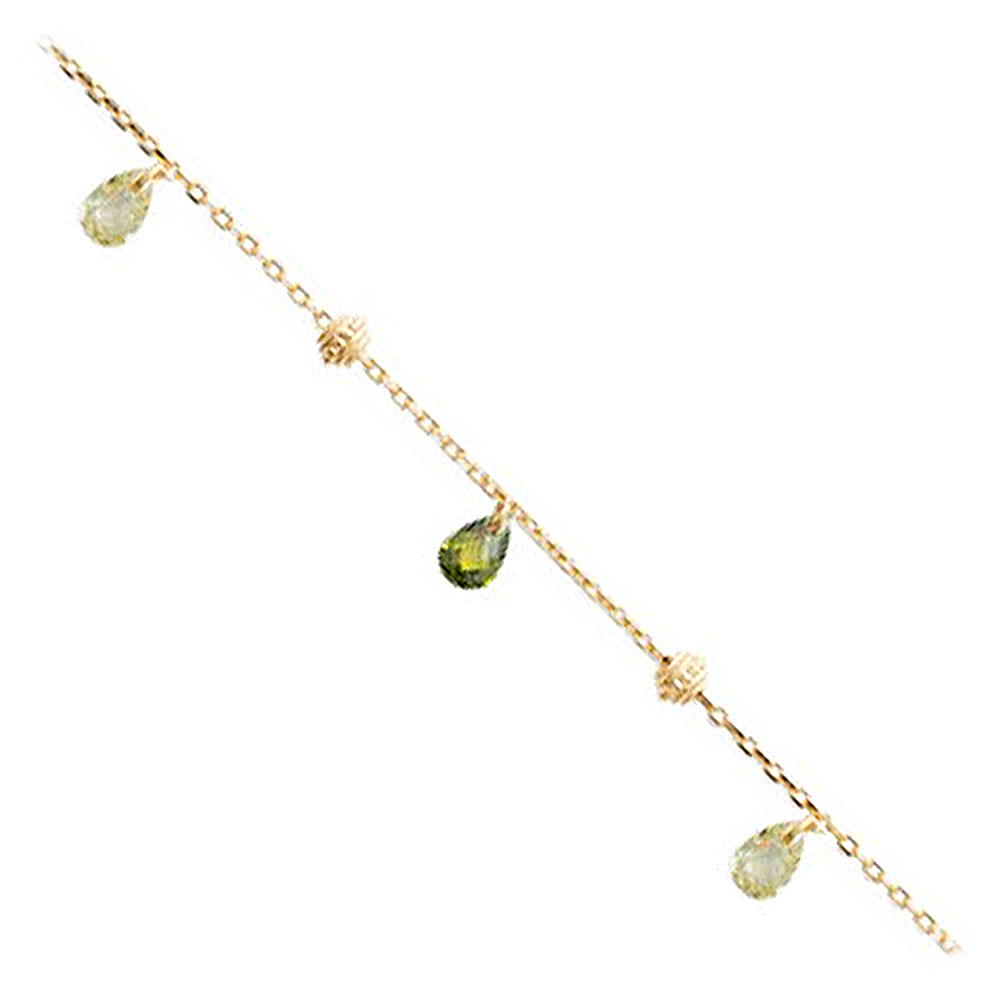 Bracelet en plaqué or jaune et cristal vert.