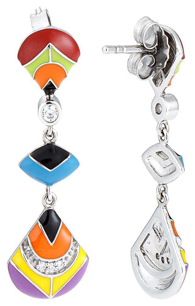 Boucles d'oreille de la collection Una Storia en argent rhodié 925 millièmes et laque serties d'oxydes de zirconium.