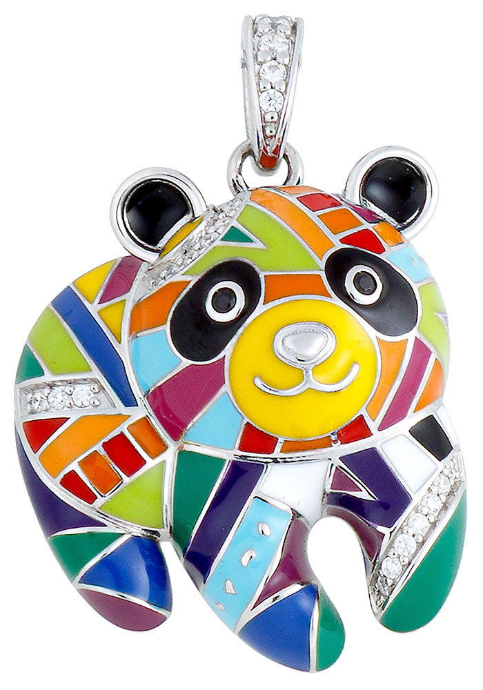Pendentif de la collection Una Storia en argent 925 millièmes et émail représentant un panda serti d'oxydes de zirconium.