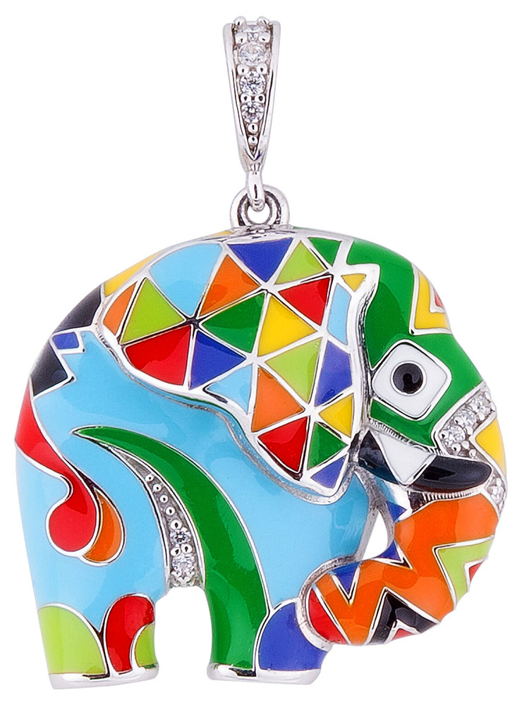 Pendentif de la collection Una Storia en argent 925 millièmes et émail représentant un éléphant serti d'oxydes de zirconium.